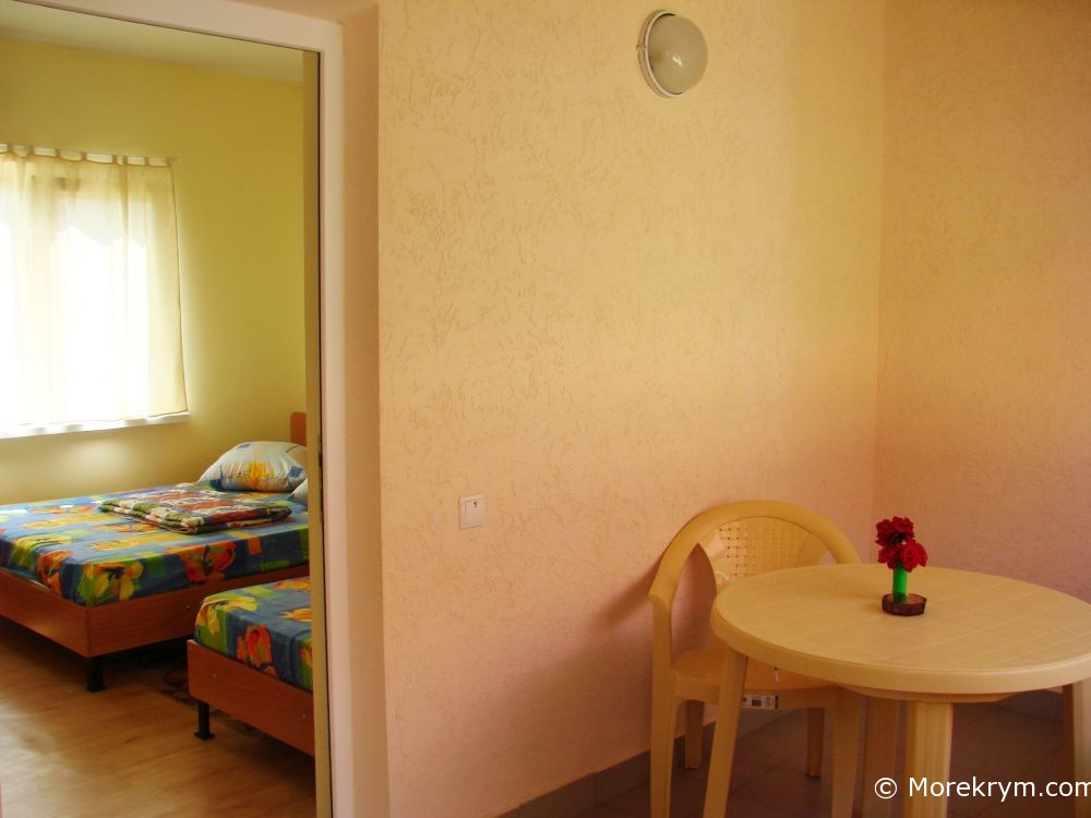 Для отдыха в Николаевке мы предоставляем 11 номеров различного уровня комфортности. Номера меблированы. Оснащены кондиционерами, холодильниками, телевизорами, интернет Wi-Fi. Холодная и горячая вода в номерах круглосуточно.